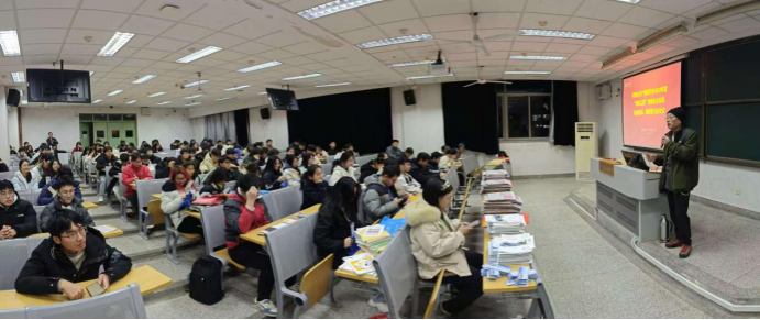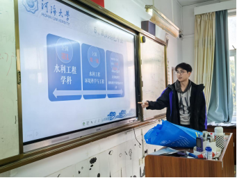 下午17:30,宣讲团开始走班宣讲。通过播放专题宣传片和PPT,主讲人全面介绍了william威廉中文官网的悠久历史、优越地理位置、综合实力、优势学科、毕业生就业情况、招生政策、校园生活和食宿条件等情况,让广大家长和同学们进一步加深了对william威廉中文官网的认知。此外,成员们也结合自身经历,为学弟学妹们介绍了河海的转专业政策及校园生活体验。为助力高三学弟学妹们备考,成员们还分享了高考备考冲刺经验。宣讲结束,台下掌声一片,氛围活跃,同学们纷纷向团队成员提问,成员们也耐心地一一解答,并为他们发放文创及资料。