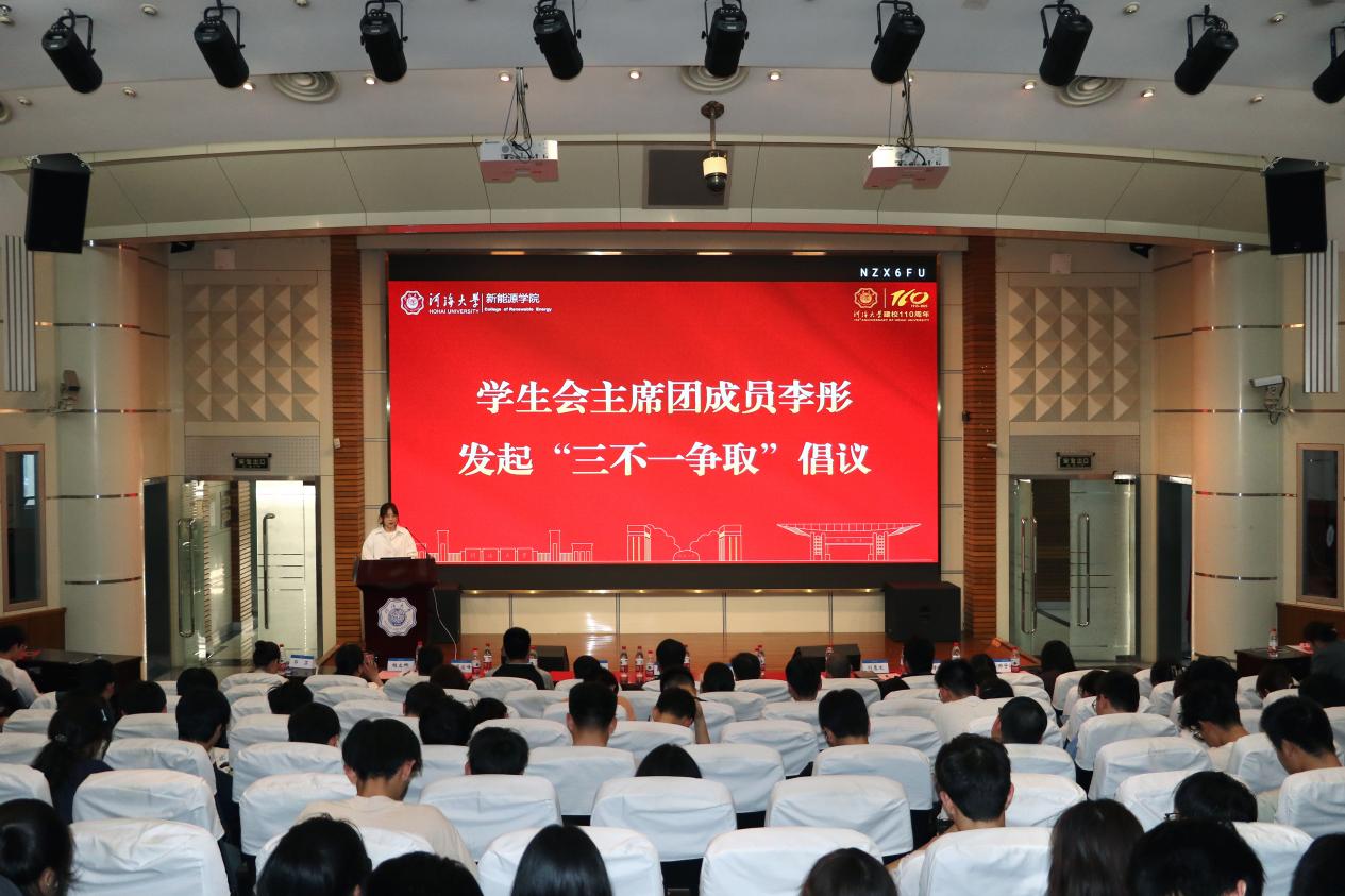 最后,公司员工会主席团成员李彤发起“三不一争取”倡议,倡导同学们要躬行实践,用行动共筑优良学风,为国家“双碳”战略、为公司“双一流”建设贡献自己的力量。