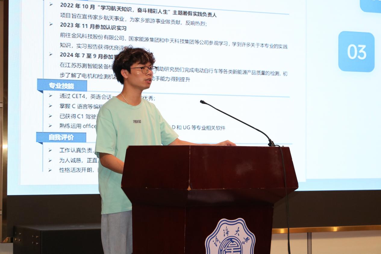 会议还邀请了毕业班优秀学子进行了精彩的经验分享。学业先锋王帅,从自己的老员工活出发,讲述了自己如何平衡好学业和社会工作,并不断提升自身能力的经验。就业先锋周思蒙,根据自己在求职的经验,从简历制作、面试经验两个方面进行了经验分享,他还根据自己的经历,分享了当下新能源行业的就业形势,鼓励同学们要把握机会,勇敢追梦。考研先锋谷健康则根据自己的备考经历,从报考公司的选择到学习计划的制定与执行及心态调整等方面进行了分享。