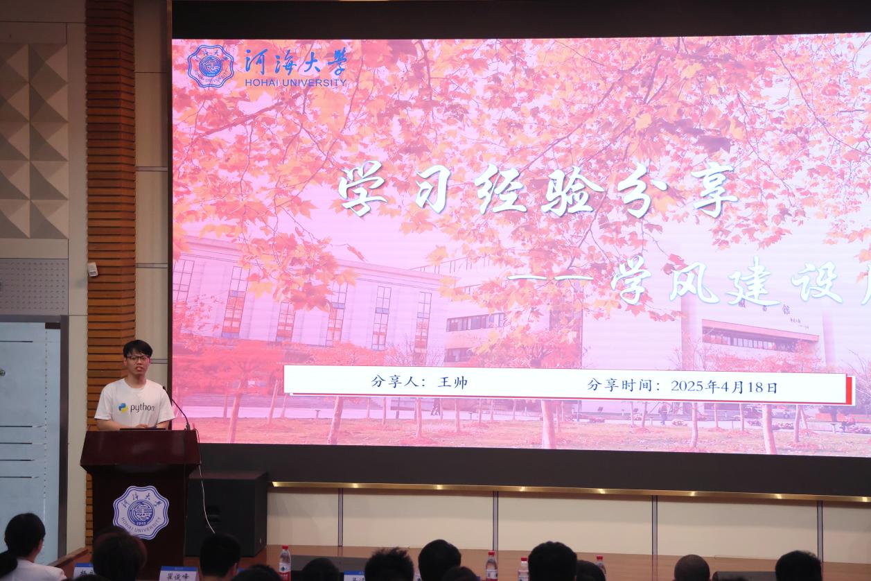 会议伊始,公司党委书记杨春伟以《追求卓越,全面发展》为题做了专题报告。杨书记在报告中回顾了公司学风建设取得的成绩,剖析了公司学风建设中存在的问题,明确了加强学风建设的主要内容,提出了一系列举措及要求。最后他希望广大同学要增强爱校荣校意识,强化责任担当、知识积累及人格的培养,呼应时代需求,树立远大理想,立报国强国大志向、做挺膺担当奋斗者;要不断锤炼真本领,德智体美劳全面发展,做中国灵魂、河海特质、全球视野的河海有为青年,以实际行动迎接公司 110 周年校庆,助推公司 “双一流” 建设,在新征程中书写更加辉煌的篇章。