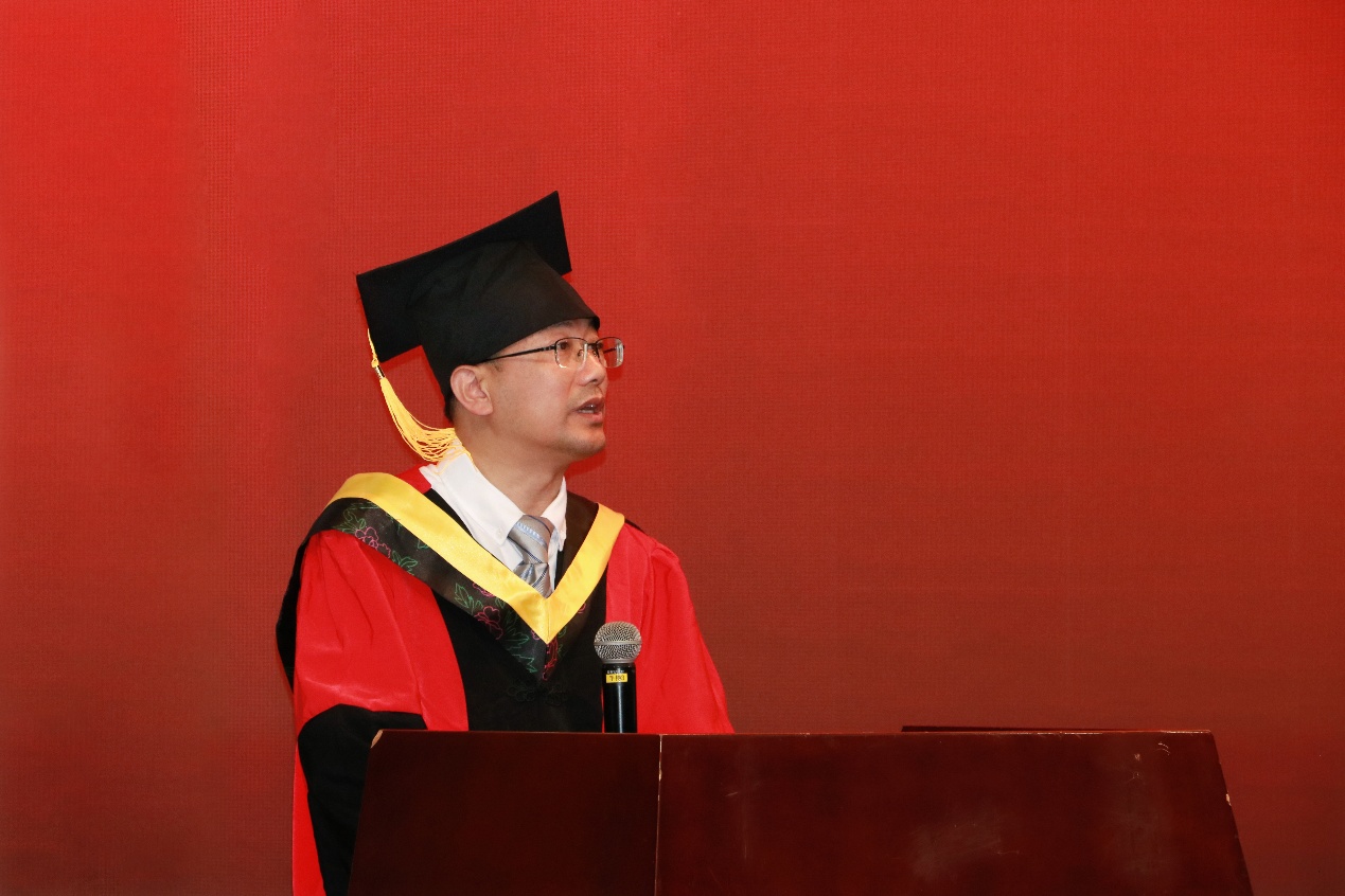 班导师代表韩星星老师发表了寄语,他希望毕业生们要传承校训精神,永葆热爱与匠心,脚踏实地,砥砺深耕。要以善意待人,锤炼心理韧性,学会团队合作,不内耗。要心怀规划与抱负,拒绝 “躺平”,明晰方向,勇立潮头。要坚守初心,永葆情怀,在踏实工作中实现物质与精神的双重富足。