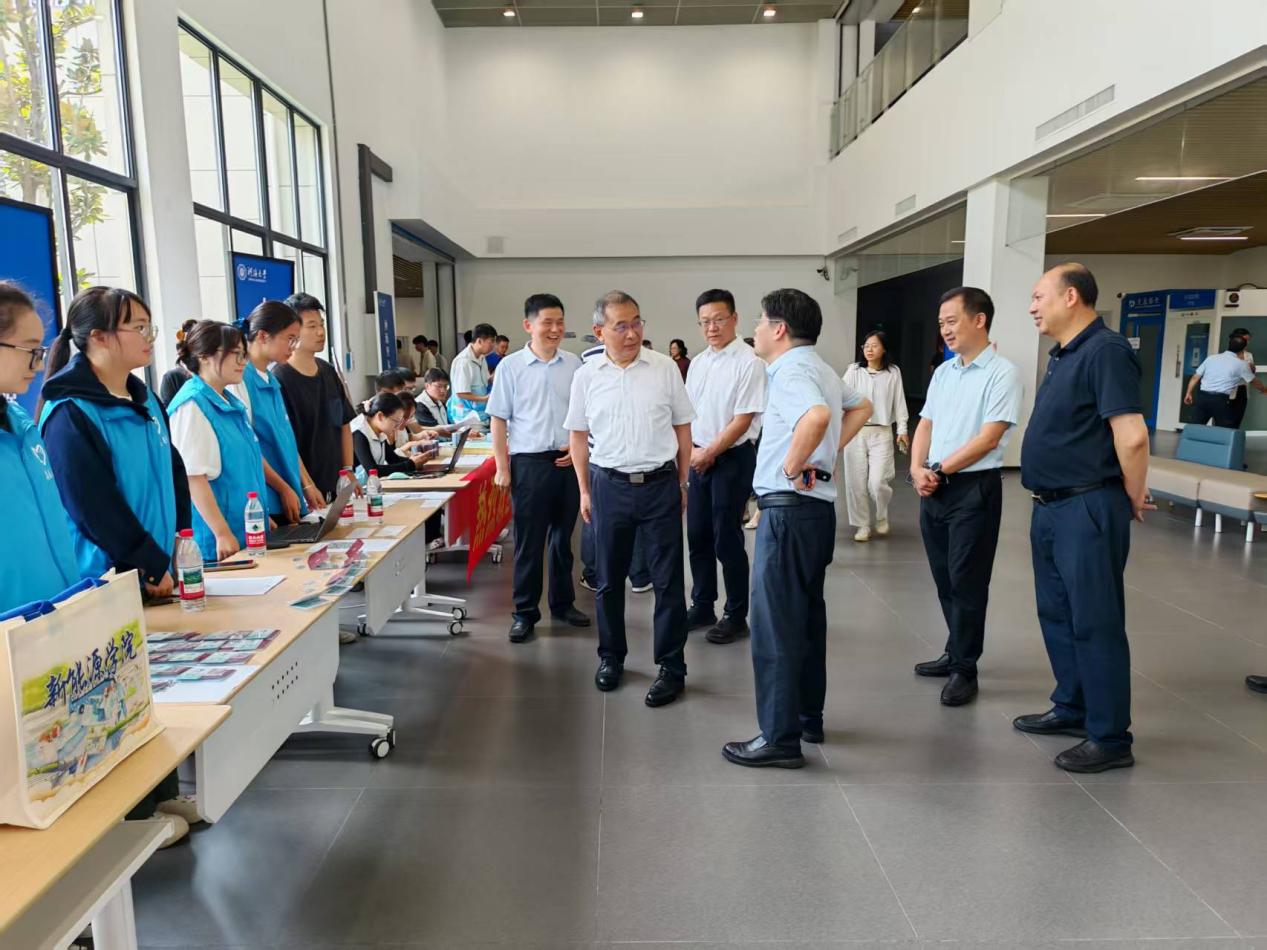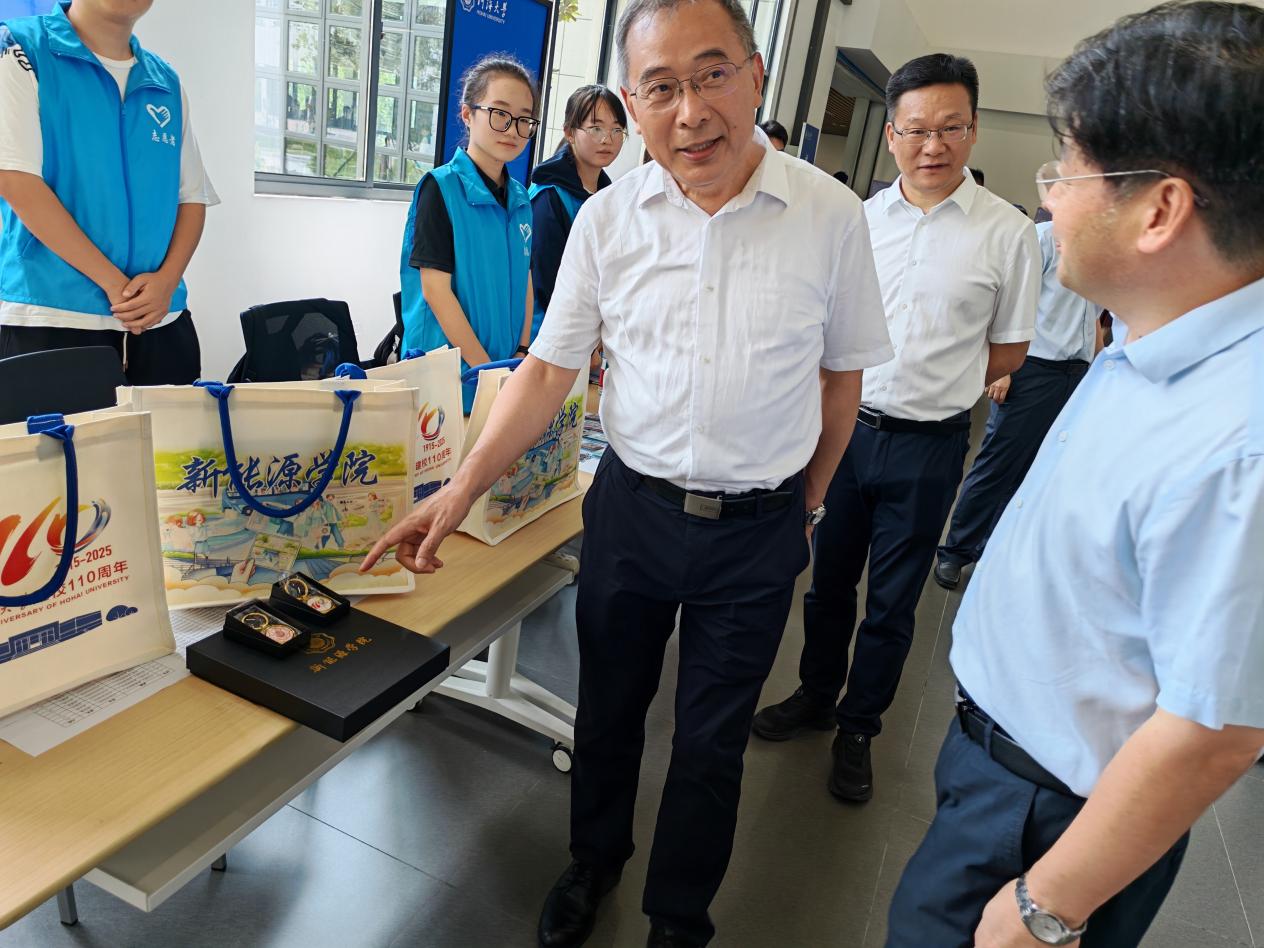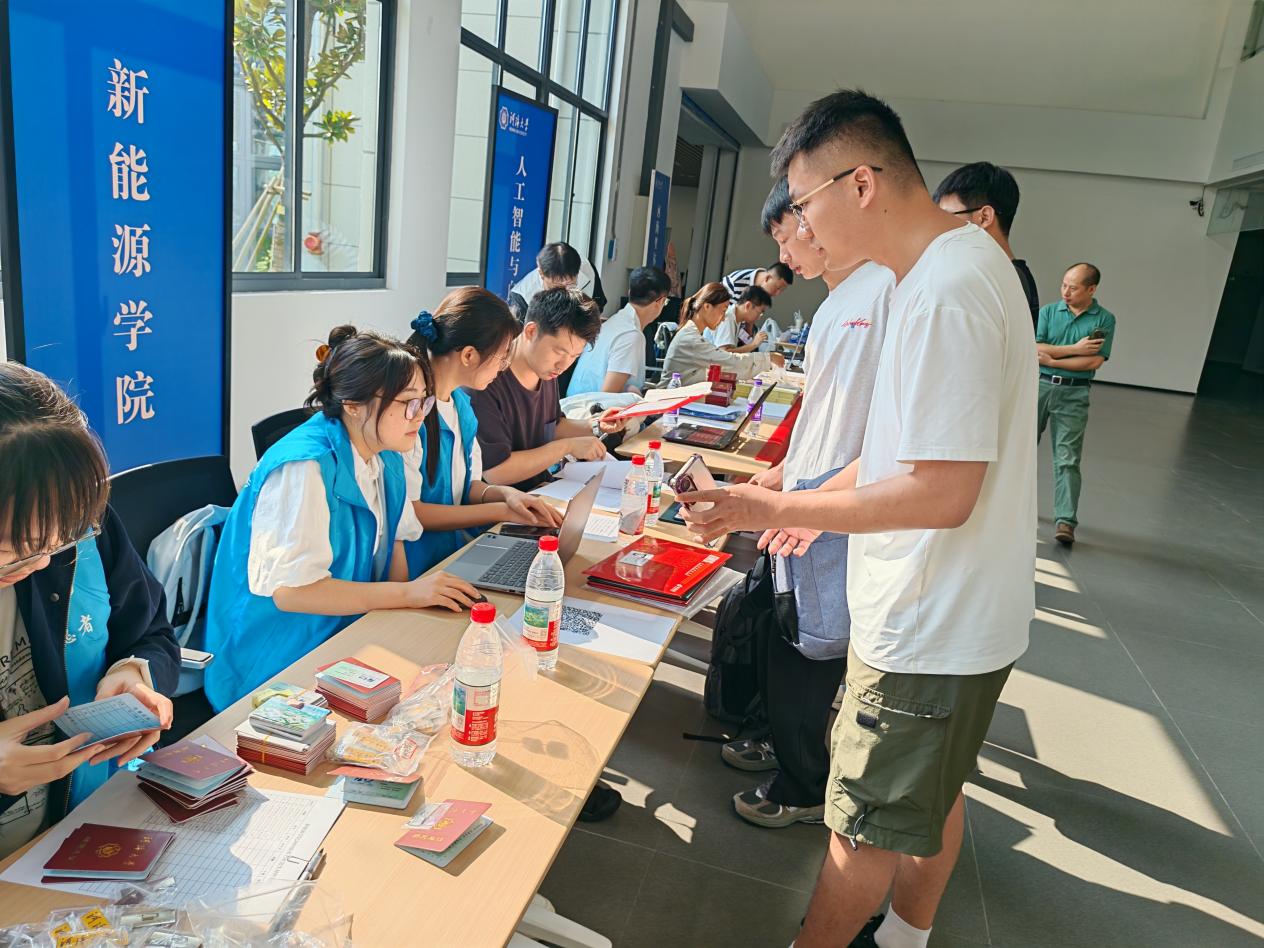 公司党委书记杨桂山亲临迎新现场,详细了解公司迎新工作进展,并与工作人员和新生亲切交流。杨书记勉励同学们要把握好新能源发展的时代机遇,勇于交叉创新,练就过硬本领,把论文写在祖国大地上,在绿色征程中书写青春答卷。