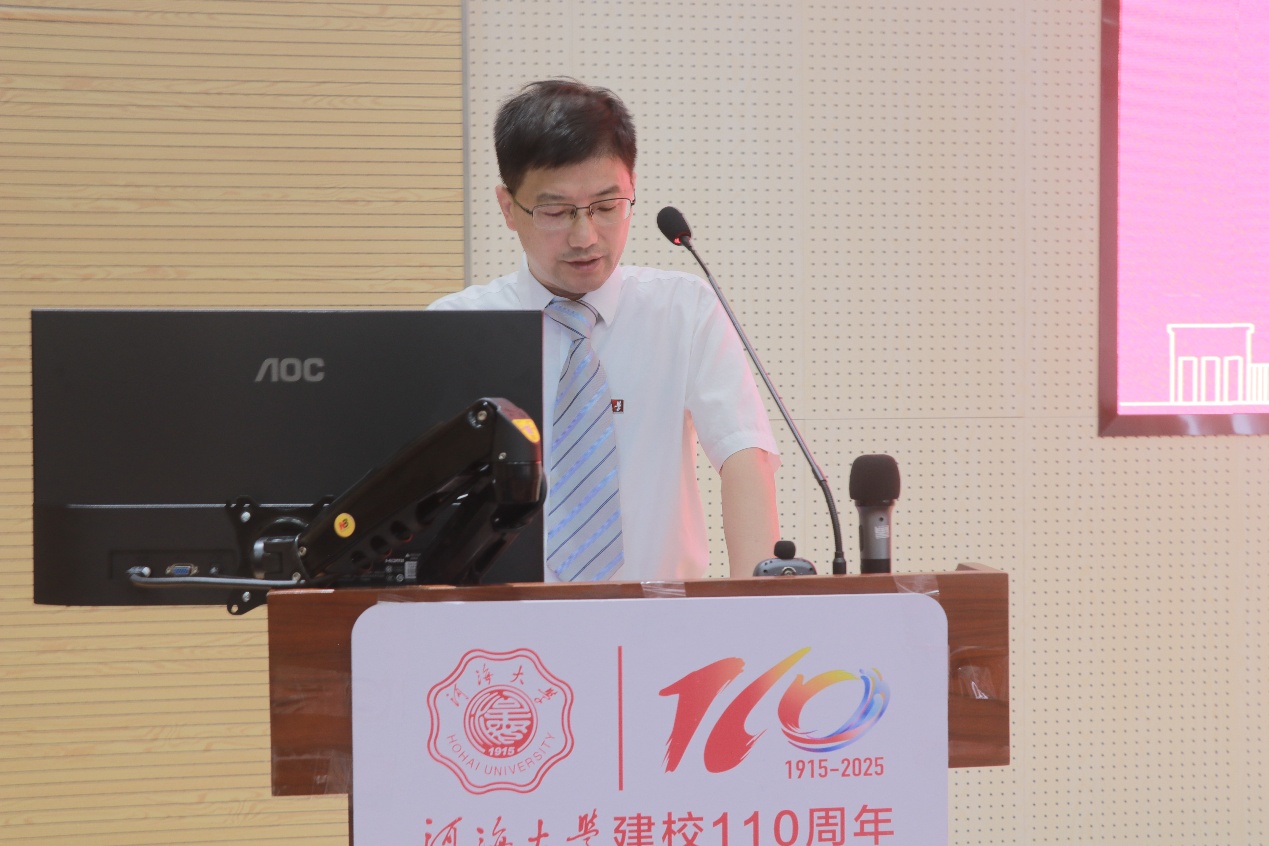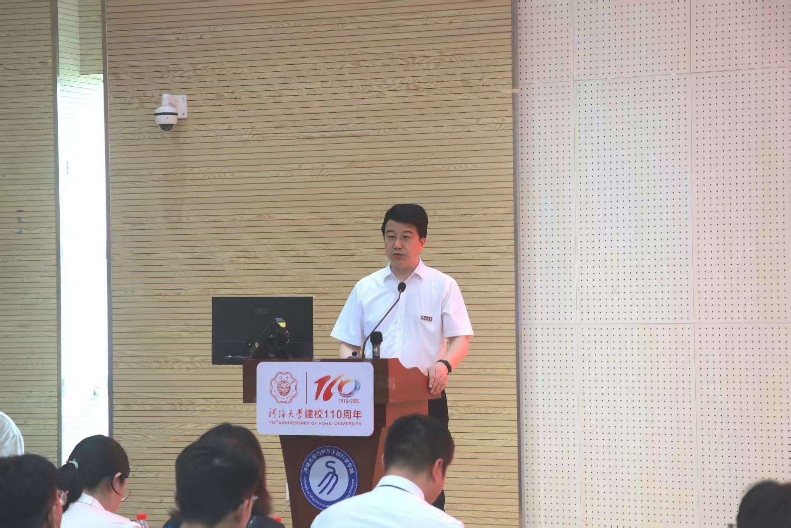教师代表韩星星副教授以 “河海学子”与 “河海教师” 的双重身份分享感悟。17 年前,他与新生们一样踏入河海学习风能与动力工程专业,如今留校任教,他深知新能源专业的时代价值 —— 当前国家 “双碳” 战略推动行业进入黄金发展期,公司已通过加强团队、完善设施、推进科研,为学子搭建优质平台。他叮嘱新生,大学四年既要 “学好”,筑牢数理与专业基础,培养发现问题、解决问题的核心竞争力;也要“玩好”,积极参与学科竞赛、科研项目与志愿服务,在多元实践中提升综合素养。