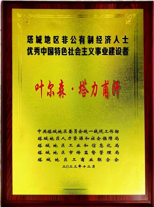 在团队建设方面,叶尔森注重人才培养与组织能力提升,所带领的新疆公司和团队成员曾多次荣获公司优秀团队奖、优秀个人奖等荣誉,自己也荣获三一重能营销将军领英计划优秀领军导师等荣誉。由于在塔城地区的中国特色社会主义事业建设工作中突出表现,叶尔森还于2023年获得塔城地区非公有制经济突出贡献奖。
